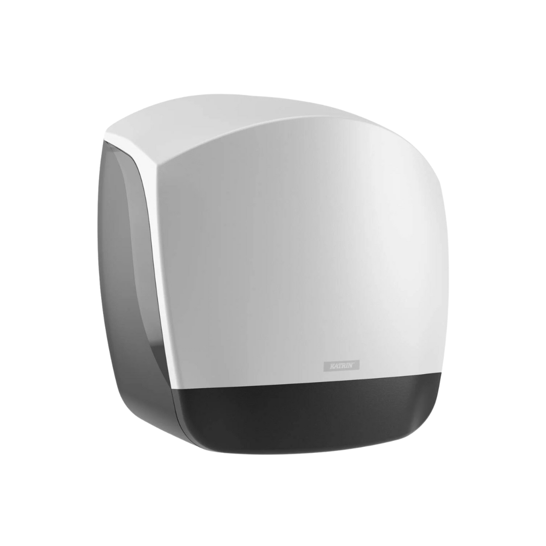 De katrin gigant dispenser in de maten S en L zijn uitermate geschikt voor drukbezochte ruimtes. De flexibele rolrem verbeterd de papierafgifte en de extra afscheurranden aan de voor- en zijkant van de dispenser vereenvoudigen het afscheuren van het papier. De naar de zijkant uitklapbare rolhouder zorgt ervoor dat de hele rol kan gebruikt worden.